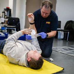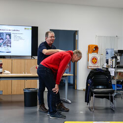 Einen Notfall zu erkennen, ihn zu beurteilen und dann zu handeln, ohne die eigene Sicherheit zu gefährden: das waren die Schwerpunkte, auf die im Erste-Hilfe-Seminar am vergangenen Samstag in Theorie und Praxis intensiv eingegangen wurde. 15 Übungsleiter/innen und Trainer/innen aus dem Main-Taunus-Kreis nahmen die Möglichkeit war und frischten ihre vorhandenen Kenntnisse in einem eigens für den Sportkreis Main-Taunus organisierten Seminars beim ASB Regionalverband Westhessen in Eschborn auf. Rainer Beck vom Lehrteam des ASB vermittelte die Inhalte in kompetenter und lebendiger Weise, so dass der Tag für alle wie im Flug verging.