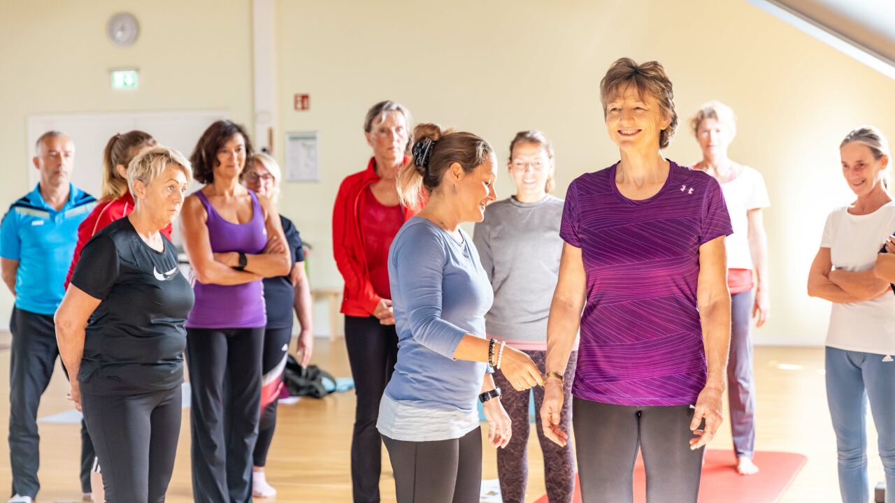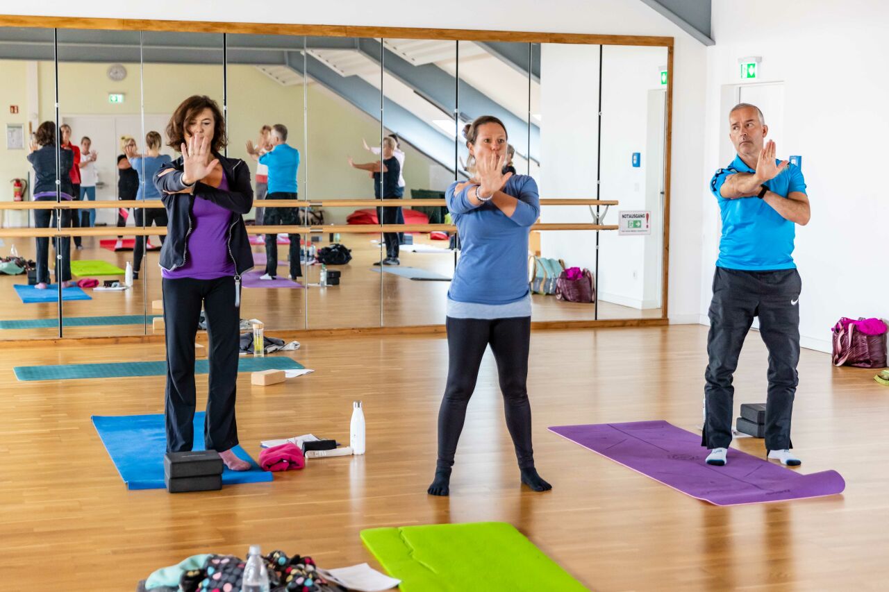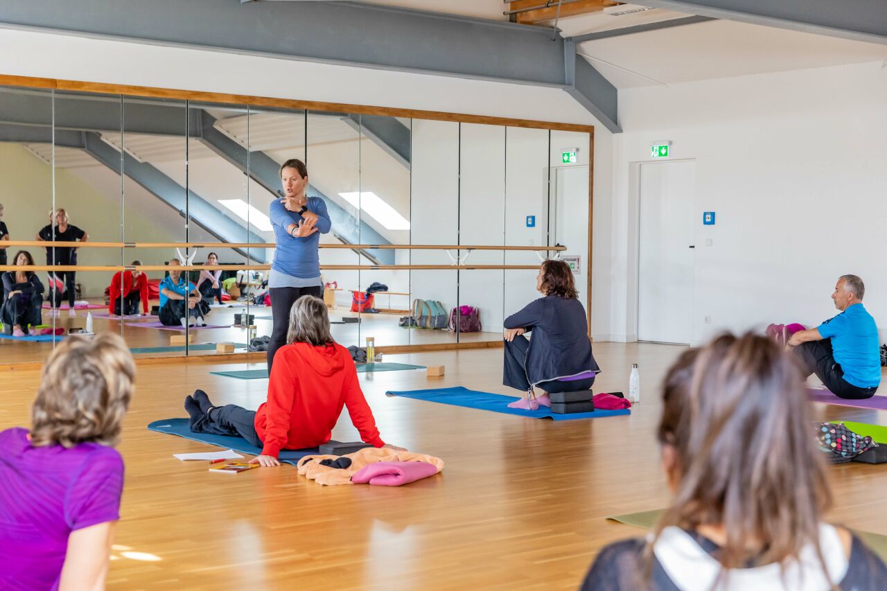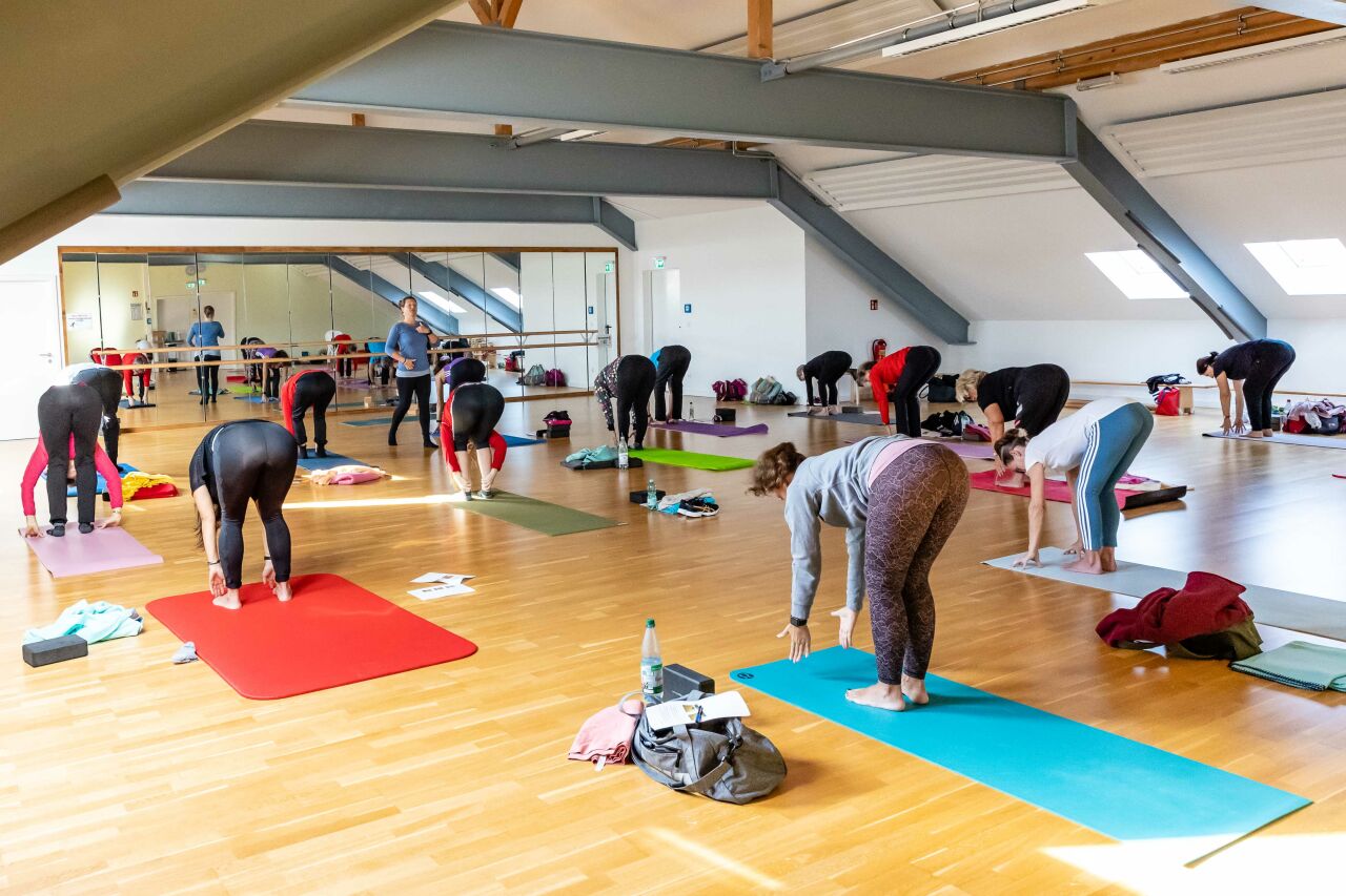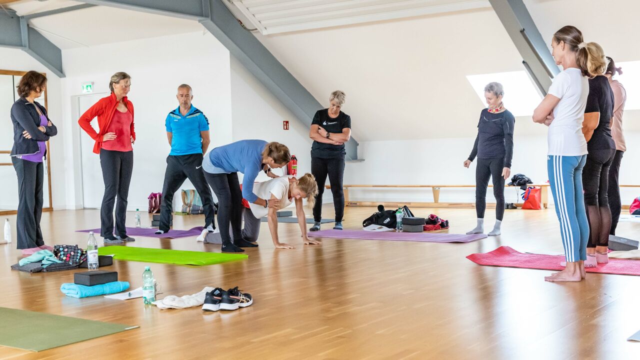 Referentin Michaela Rettig begeisterte am 30.10. Übungsleiter/innen und Trainer/innen mit praxisorientierten Tipps, wie das Yoga-Element Sonnengruß in das eigene Sportangebot einbezogen werden kann. Besonderen Wert legte sie dabei auf einen therapeutischen und gesundheitsorientierten Ansatz.